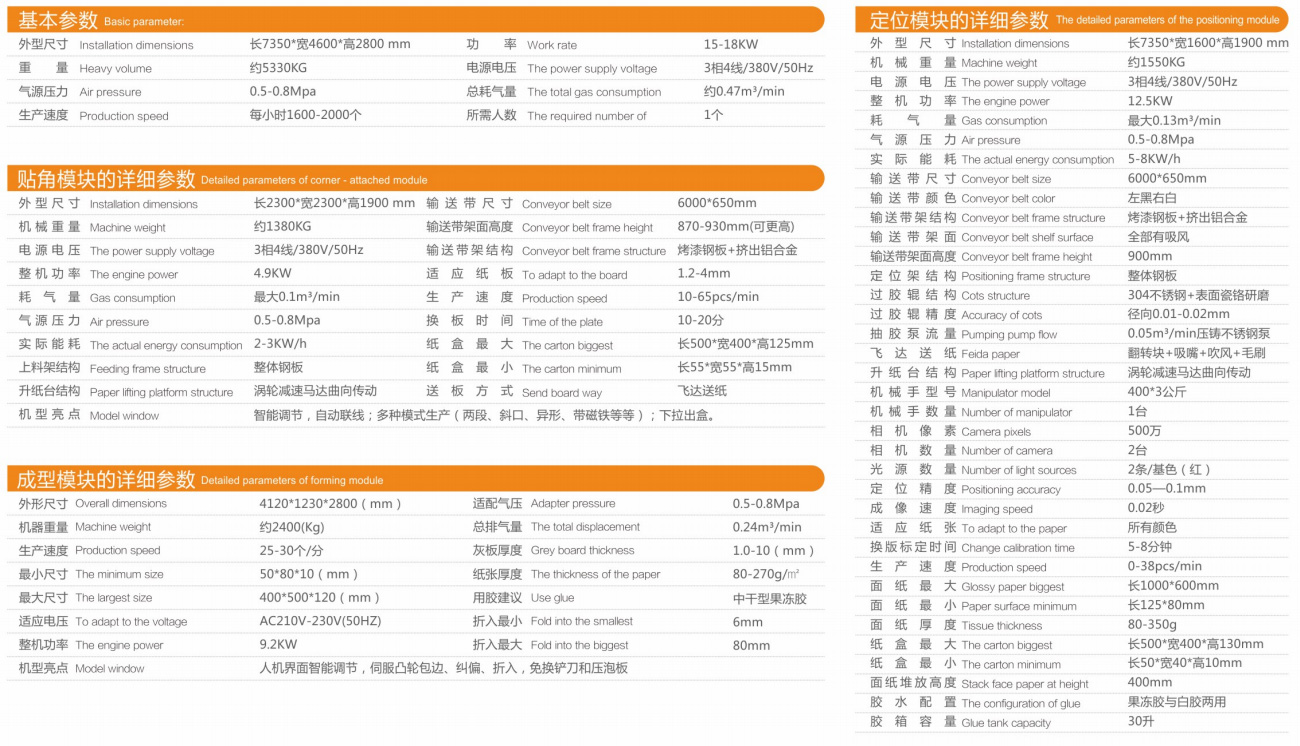 ThemachineismainydiidedintothreepatS:pOSitoningmodule;COrnersickingmOduieandorming modLule.tcanrealzeauiomaticpaperfeeding。auitomacgluing,automatcCOmersicking,atutomatcpOsitiofning,
